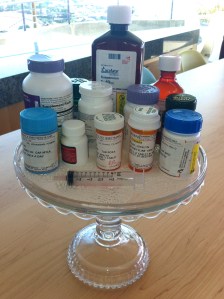 4. I I love the cake pedestal platter for your myriad of drugs. Very classy. Must be a Martha Stewart PPPP (pill popping presentation Platter). My prayers are with you and I think about you daily. Keep your spirits up and keep blawging! Love it.
