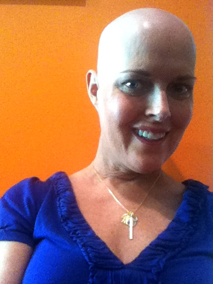 First, my hubby, Todd, not only surprised me with a buzz cut the day after I had my head shaved, he also went for a big fat purple  “J” tat on his left deltoid!!!