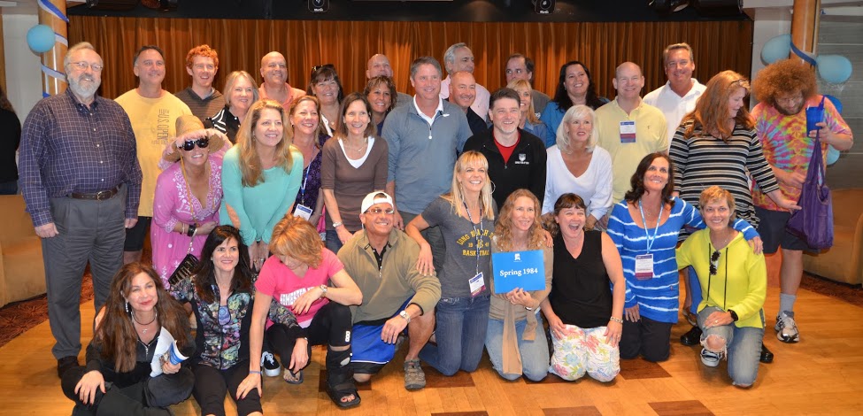 Last week I was able to step foot into my first foreign country since these creepy diseases crept up on me.  I attended my Semester at Sea 30-Year Reunion Voyage from San Diego to Ensenada, Mexico.  But it wasn’t really about the port visit.  It was about our group of 40 shipmates getting back together again after 3 decades.  I met my husband, Todd, on the Spring ’84 around-the-world voyage, and we were so happy to be able to join our pals for a very FUN four days.  The new ship offered no classes, no lockers for closets, no losing an hour every other day, no soot on our clothing, and no cabin stewards with a fetish for short-sheeting their cabin residents.  My brother/hero/donor, Leason is a SAS alum, from the Spring ’88 voyage, and I am so grateful that he was able to make the voyage even more special and meaningful!  Our awesome reunion chair, Val, presented me with an incredible jacket, with a ‘J’ on front and ‘Courage’ embroidered on the back!  A group from the Spring ’09 voyage (which Todd and I joined for a few weeks from Morocco to Namibia to South Africa) decided to dedicate a dress-up night to my recovery (I know – so f-ing amaze balls) where everyone dressed up in a costume that started with the letter ‘J’.  These crayzeee individuals came as the Jackson 5!  There was a jailbird, a Jesuit, Jared the Jeweler, Jameson Whiskey, some Japanese ninjas, a Jew in a jacket, Jesus, J Lo, and many more!  I came as Ja’mie, the self-proclaimed hawt and insanely popular Aussie high schooler from the hit HBO show, Summer Heights High.  As soon as the bar was packed with shipmates, and the drinks were flowing, Leason  ‘jogged’ up, donning a neon singlet, micro running shorts (borrowed from his wife, Kesha), a headband, wrist bands, and neon Asics.  Classic costume!  Those sought after ‘J’ tats made a showing on the voyage as well.  My eyes were acting up during the fab four days, but it was a GREAT time!  What could be better than being surrounded by ‘J’s, my second favorite letter?  🙂